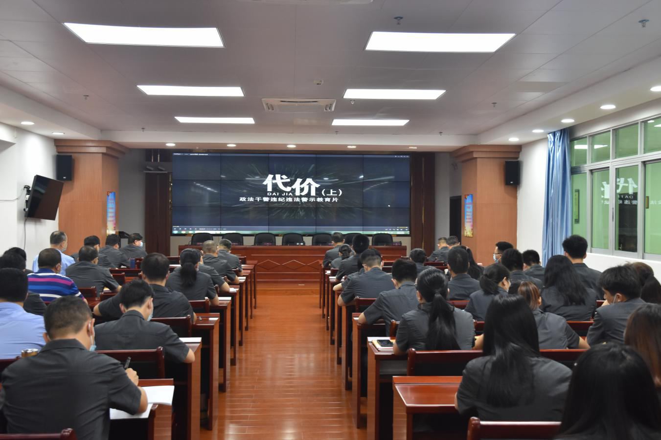 为扎实推进封开法院队伍教育整顿查纠整改环节走深走实,筑牢干警的拒腐防变思想防线,引导干警知敬畏、存戒惧、守底线。5月26日晚,封开法院组织全院干警观看政法干警违纪违法警示教育片《代价》。
